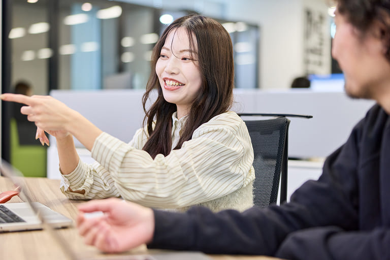 「人が良い会社」とは聞いていましたが、今その言葉を実感しています。実は、オフィスがおしゃれで「こんなかっこいいところで働きたい!」と思ったことも理由の一つです。 -